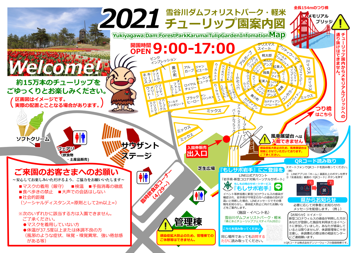 2021年の雪谷川ダムフォリストパーク・軽米のチューリップ園は、感染症対策を講じたうえで4月29日(木・祝)開園いたします。